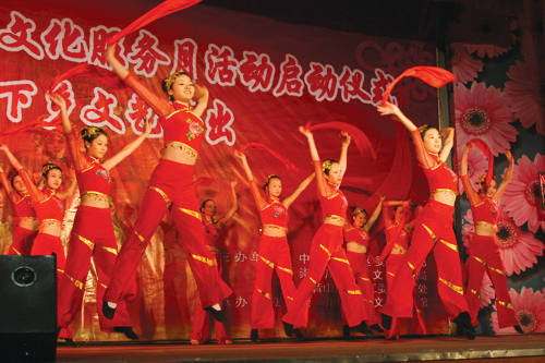 由我局精心组织、区文化馆认真编排的文艺演出贴近群众、气氛热烈。舞蹈、歌曲,魔术、,戏曲、器乐演奏等老百姓喜闻乐见的节目一个比一个精彩,赢得场下观众阵阵掌声。舞蹈《飞跃》优美欢畅,拉开了整场演出的序幕;魔术《万剑穿身》惊险几次,扑朔迷离;一曲深情的男女声二重独唱《爱我中华》,让人回味无穷;街舞《动感男孩》,看得人眼花缭乱,激情四射,台上台下一片欢歌笑语。整台演出融合传统与现代,满足不同层次观众需求,营造出党群心连心、上下齐联动的公共文化服务活动氛围。