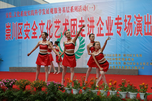 整场演出以实践科学发展观为目的,围绕安全生产主题,节目形式新颖,内容丰富。我馆同志共同参与的打击乐节目《奋进的崇川》敲出崇川大地春潮涌动的热烈与气势;快板说唱《新歌唱响崇川年》描绘了崇川弯道超越、逆风起飞的崭新画卷;小品《有事找我》,以诙谐幽默的形式,道出安全在人们生活中的重要性;舞蹈《俏花旦》、歌曲《生命之歌》、二胡演奏《菊花台》等精彩的演出赢得在场观众的阵阵掌声和欢呼声;最后,演出在歌舞《天路》中落下帷幕,动人的旋律和优美的舞姿,让人感受到安全就像一片祥云,为人们带来幸福和吉祥。为进一步提升企业职工的安全意识,演出现场还进行了科学发展观和安全生产知识问答,上下互动,气氛热烈。