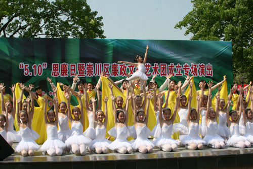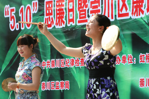 为进一步深入开展“坚持廉洁从业,实践科学发展”为主题的“5·10思廉日”活动,营造崇尚廉洁的浓厚社会氛围,5月10日下午,中共崇川区委纪律检查委员会、崇川区监察局、崇川区文化局在虹桥公园内隆重举行“5·10思廉日”暨崇川区廉政文化艺术团成立专场演出。中共南通市纪委副书记徐珉南一行五人、崇川区领导及各街道、村居主要领导兴致勃勃来到现场,与600余名群众一起观看演出。