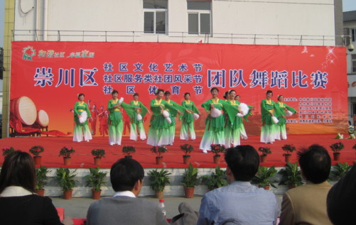 11月6日下午,由区委组织部、区委宣传部、区文化新闻出版局、区教育体育局、区民政局共同主办,区文化馆、钟秀街道党工委、办事处承办的崇川区社区“三节”第三场单项比赛——团队舞蹈比赛在环东广场举行,来自全区10个街道的19支群众舞蹈团队一一登台亮相。学田街道民族风艺术团的印度舞《天竺之恋》、和平桥街道舞蹈队的《世界风情》、虹桥街道木兰艺术团的《水韵荷风》、钟秀街道中心村社区阳光艺术团的民族舞《吉祥颂》等,或火辣动感,或韵味十足,或异域风情,或小桥流水,赢得观众的阵阵喝彩和掌声,现场掀起了一轮又一轮高潮。