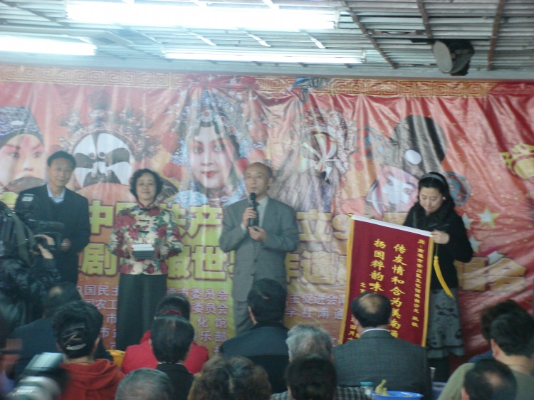 北京和韵京剧社李栩社长向南通戏曲沙龙献锦旗 王新民向南通戏曲沙龙增送演唱DVD