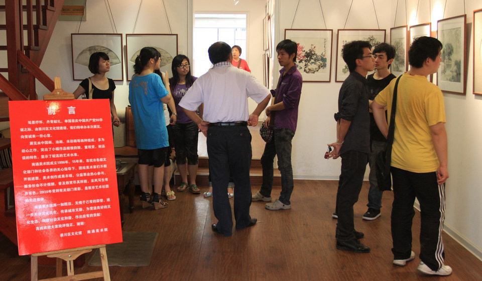 7月1日,“笔墨丹青颂辉煌——庆祝中国共产党诞生90周年画展,在市区环城北路濠河边雨鹭画廊开幕。展览由崇川区文化馆和南通美术院联合主办,展出了中国画、油画、水彩画等小幅作品60余件,是画家们向党的生日献上的一份心意。