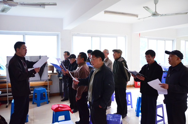 3号楼活动室,由杨宝红老师辅导老来乐艺术团,此次讲课内容是辅导歌曲《红河谷》,此