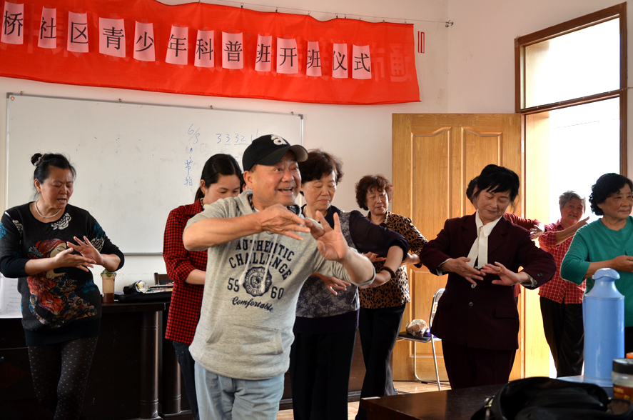 上图为袁志勇老师在流动大讲坛走进城东街道小石桥社区时给社区越剧爱好者讲越剧的舞台表演技巧