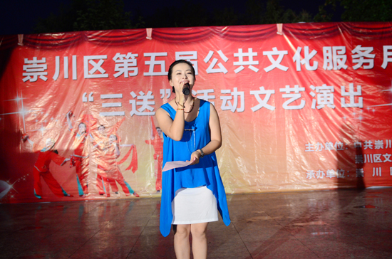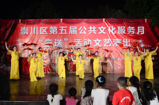 由崇川区区委宣传部和崇川区文化新闻出版局承办,我馆主办的第三届公共文化服务月“三送”文艺演出活动走进虹桥街道,上图为送演出时的场景。
