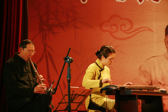 3月29日下午,崇川区委礼堂飘起阵阵典雅古朴的琴音,它们时而低沉婉转,时而铿锵激越,时而忧愁悲愤,时而清新飘逸,这是区委宣传部、区文化新闻出版局主办我馆承办的四季风采靓崇川之春满大地——“静海雅韵”梅庵派古琴艺术专场演出的现场,11支梅庵派古琴名曲感染了现场数百名观众。 为弘扬、推广、宣传国家级非物质文化遗产梅庵派古琴艺术,我馆最有影响力、群众参与最广的品牌文化活动“四季风采靓崇川”将这一高雅艺术带到普通大众面前。演出对梅庵派古琴和《关山月》、《精忠词》、《平沙落雁》、《月上梧桐》等古琴名曲进行了介绍,徐毅、张景林等梅庵派古琴名家倾情献演,并用古琴配萧、舞蹈、诗朗诵、太极拳等形式增加演出的观赏性,展示了古老艺术绵绵不息的生命力,使得现场观众对这一中华文化瑰宝深深着迷与沉醉。 |