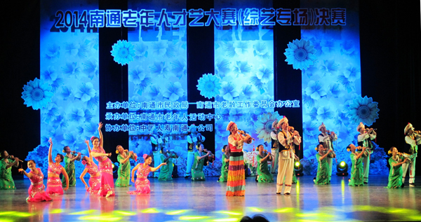 为了给老年文艺爱好者搭建展示才华和风采的舞台,由南通市民政局、市老龄办等单位联合承办的“安愉人生2014南通老年人才艺大赛(综艺专场)”正式启动。大赛分为器乐、曲艺、小品、服饰和绝技绝活等。大赛引起了社会广泛关注,吸引了数万名老人积极参于,共有一千多个节目参加海选,老年人在属于他们的舞台上绽放着独特魅力。经过重重选拔,一百余个优秀节目进入复赛。9月20日下午1点半,从复赛中脱颖而出的18个优秀节目亮相南通壹城更俗剧院,进入最终决赛。 经过三个小时的角逐,我馆丝语聆音艺术团黄亚玲老师编导的葫芦丝《聆音欢歌》拔得头筹,获得2014年南通老年人才艺大赛的一等奖。