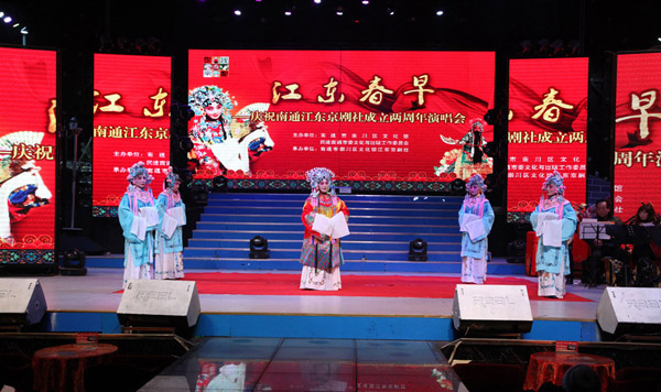 3月1日下午,崇川区文化馆、民进南通市委文化和出版工作委员会联合举行京剧演唱会,庆祝江东京剧社成立两周年。