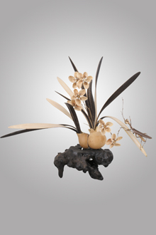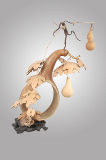 杨振明曾是南通工艺美术研究所职工,从事民间工艺研究多年,其竹艺技艺继承了南通民间竹艺工艺,又有自己的创新,其工艺手法还借鉴了民间红木雕刻、家俱制作等传统工艺。近来同时吸收了欧美及非洲民间工艺文化,在 竹艺 上想一个“趣”字,在造型上注重一个“巧”字,巧然成趣,浑然无成。故他的作品很有时代特色。