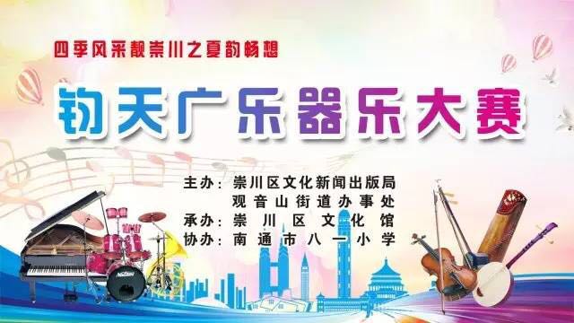 继2014、2015年崇川区文新局、文化馆成功举办两届“国乐飘香”民族器乐比赛以来,全市器乐类团队活动掀起了高潮。为更加丰富比赛内容和表现形式,充分展示各种器乐演奏者的风采,现更名为“崇川区钧天广乐器乐大赛”,这将是又一届全新的赛事。 炎炎夏日阻挡不了器乐爱好者的热情,第一场初赛(弹拨组)今天在艺术教育特色学校南通市八一小学的梧桐楼拉开战幕。 初赛场次、时间安排 欢迎广大器乐爱好者观看,指导!