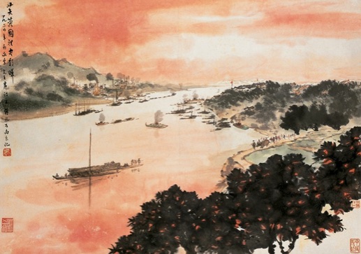 江苏省美术馆馆藏新金陵画派精品展:傅抱石作品《芙蓉国里尽朝晖》