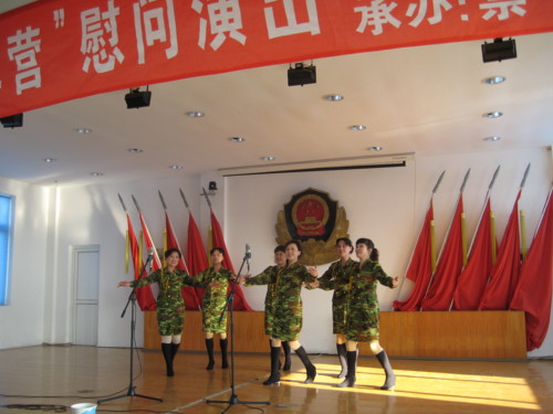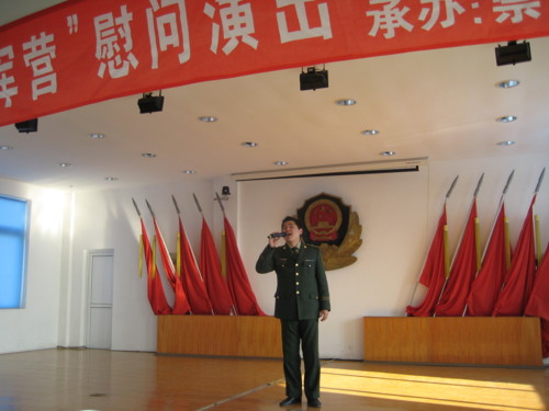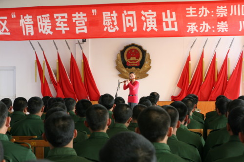 慰问演出在武警官兵铿锵有力的拉歌声中开始,演员们不顾疲劳,精神饱满地为武警官兵献上了一个个精彩的节目,无论是声情并茂的男女声对唱《为了谁》,还是娴熟的琵琶独奏《红梅赞》,都博得全场经久不息的掌声。整个演出主题鲜明,全场气氛热烈。最后,武警战士的一曲《报答》将演出推向高潮。