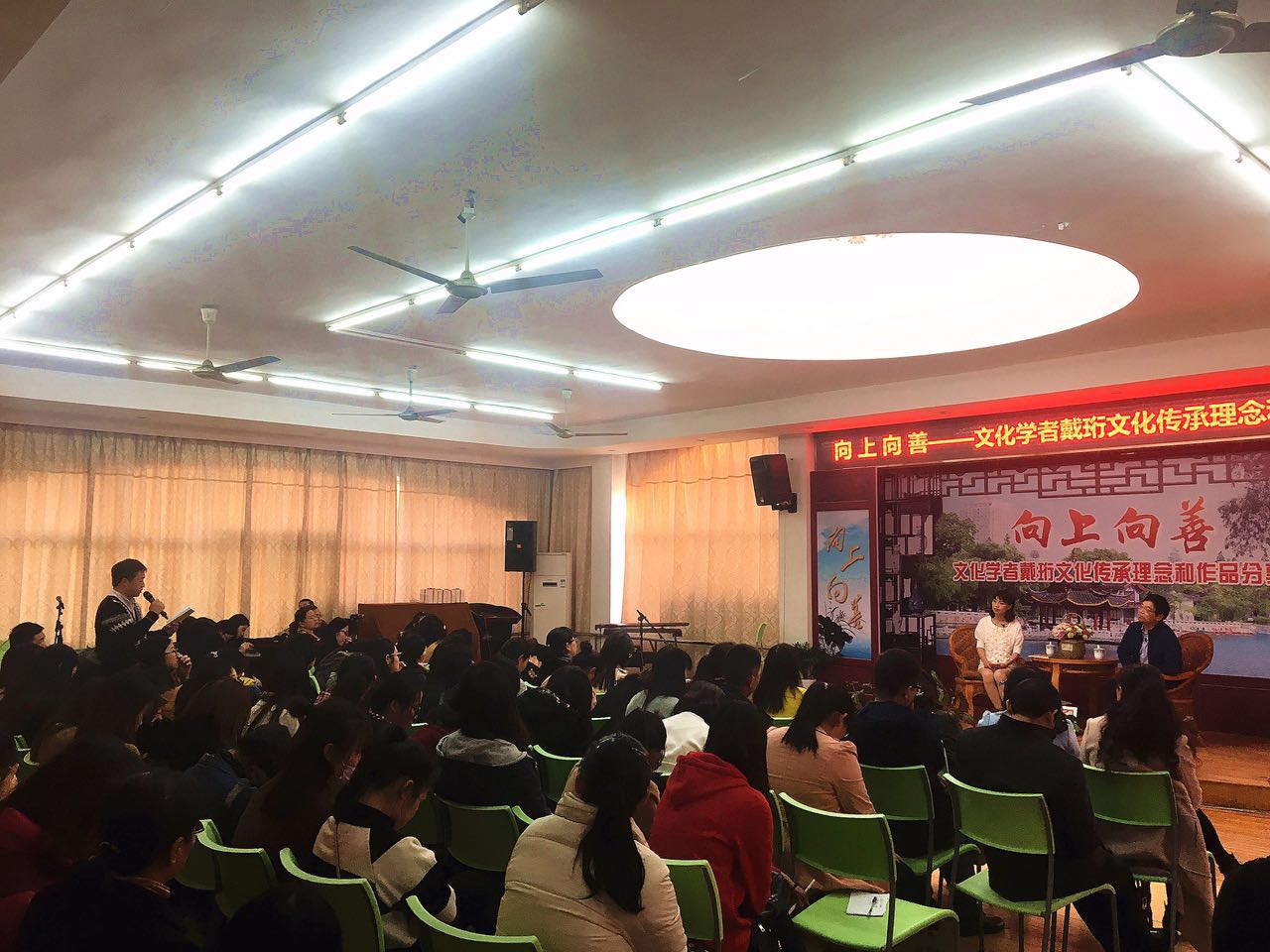 11月15日下午,在南通师范学校第二附属小学童话楼三楼正举办着一场温馨、诗意、唯美的视听盛宴——“向上向善”文化传承理念和作品分享会。盛宴由南通市崇川区文化新闻出版局主办,崇川区文化馆、南通师范学校第二附属小学承办,教师、家长、学生近200人参加。盛宴主人公文化学者、作家戴珩结合自身阅历分享了个人对文化与生活的思考,传导了“向上向善”的理念。