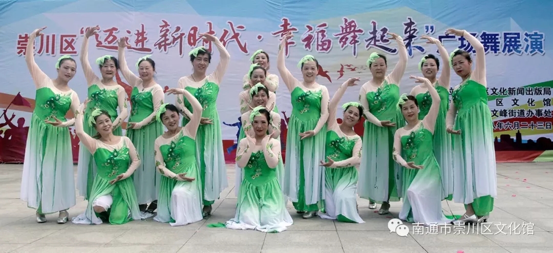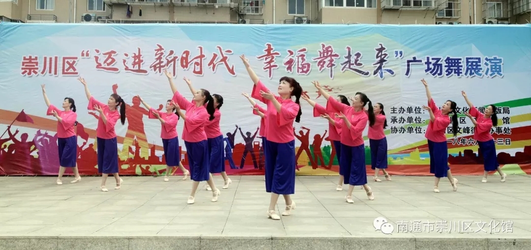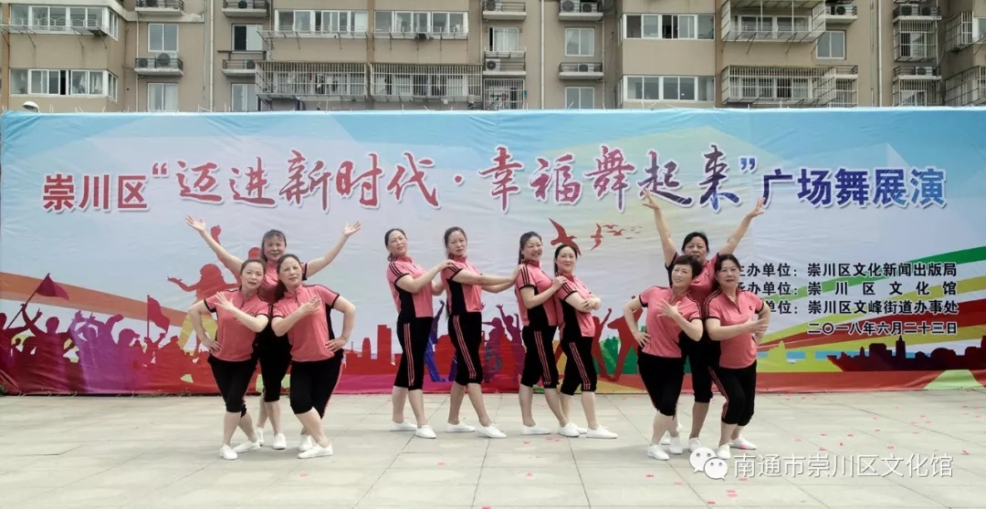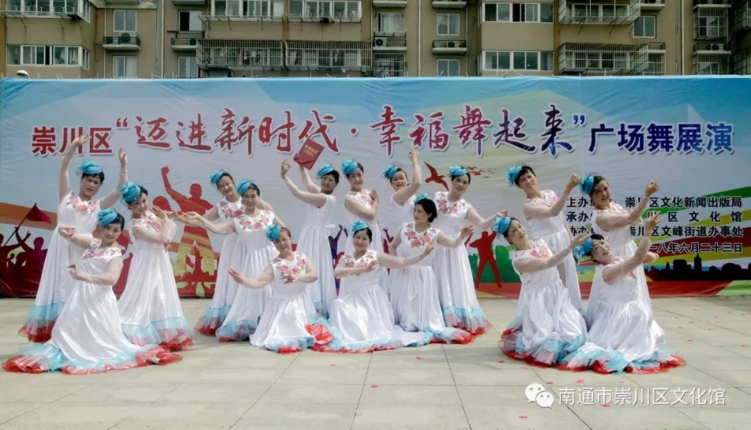 6月23日上午,由崇川区文新局主办、区文化馆承办、文峰街道办事处协办的崇川区“迈进新时代·幸福舞起来”广场舞展演在文峰街道鲍家桥社区紫东花苑文化广场火热举行,各街道推荐的10支优秀街道文化团队参加了展演,500多名居民观看了演出。此次活动是2018年南通市“全民文化节”系列活动之一。在市、区活动的引领下,全区各街道文化站、社区综合文化服务中心也将陆续开展丰富多彩的群众文化活动百余场,惠及居民万余人。