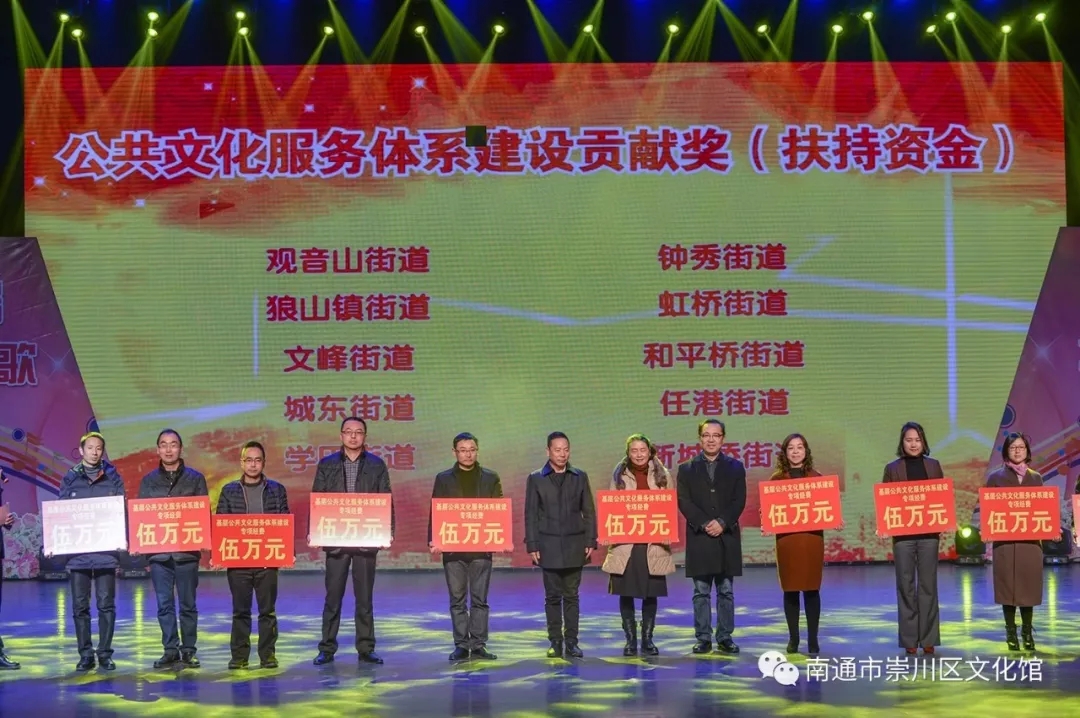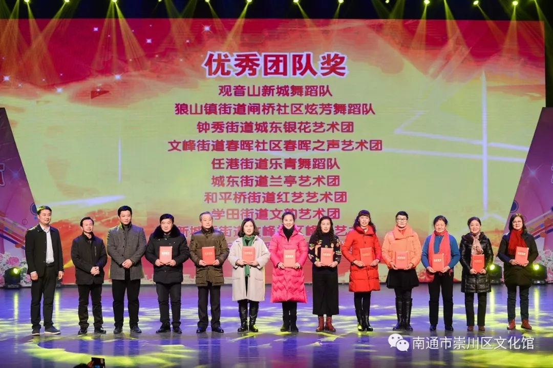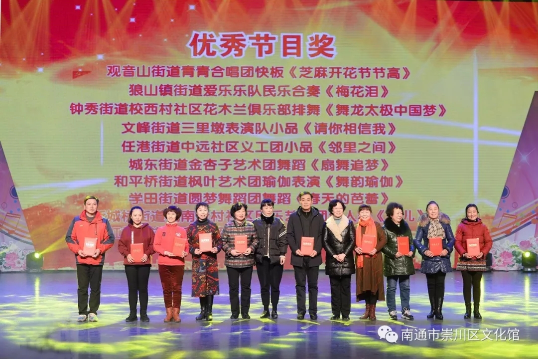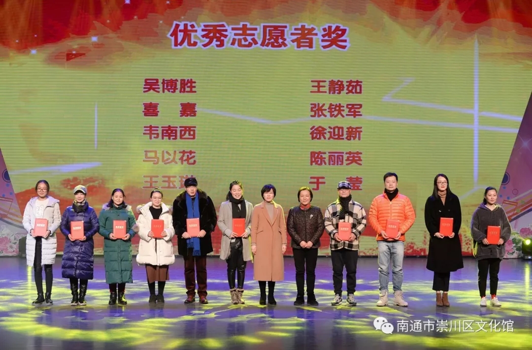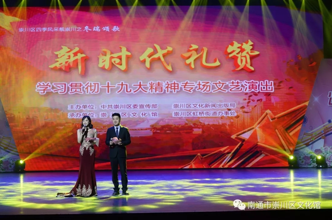 2018是全面贯彻落实党的十九大精神开局之年。在全区上下认真贯彻落实党的十九大精神的日子里,崇川文化人豪情满怀,信心百倍。2018年是改革开放40周年的重要年份。回望崇川区改革开放40年各项事业蓬勃发展的难忘岁月,我们心潮澎湃,意气风发。在区委、区政府、区委宣传部的关心指导下,过去一年,全区文化战线取得了新的进步。以加强公共文化服务体系建设作为重中之重,以推动文化建设迈上新台阶为主目标,以深入落实文化建设工程为主抓手,在完善公共文化服务体系、加快文化事业和文化产业发展、彰显崇川文化特色方面,取得了阶段性成效。区文广新局投资的越剧《仁医寸心》、电视剧《长征大会师》获得省“五个一”工程奖。《仁医寸心》在全国巡演25场。电视剧《长征大会师》在CCTV-1黄金档播出。区文化馆天籁之声合唱团合唱《嘎哦丽泰》、区文化馆圆梦舞蹈团舞蹈《吉祥》获第十二届江苏省五星工程奖优秀作品奖。今天我们欢聚一堂,用文艺的形式展示在党的十九大精神引领下,崇川区上下凝心聚力,不忘初心,奋发有为的精神风貌。