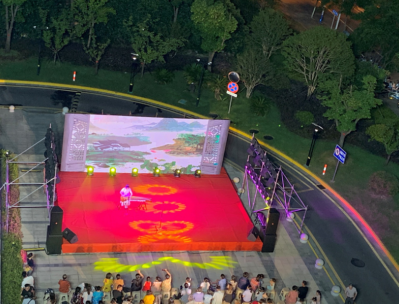 第三场琴声艺术中心的暑期汇报演出,虽然天宫不作美突降暴雨,但并没有阻止演员和群众的热情,演出地点由场内转至场外。演员们尽情地在舞台上展示他们的才艺,精心编排的节目轮番上演,舞台上,表演者们的演出时而神采飞扬,时而朝气蓬勃,时而激情澎湃,时而婉转动听,舞台下,辖区内的观众看的津津有味,如痴如醉,掌声此起彼伏。
