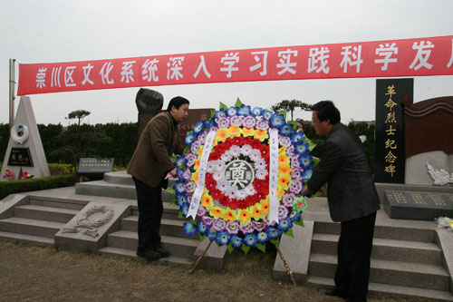祭扫活动中,局党组书记、局长吴海军要求,文化系统全体干部职工要以学习实践科学发展观活动为契机,继承烈士的精神,把爱国之情,报国之志,化为报国之行,用我们的汗水、智慧,甚至是生命,努力工作,为“率先现代化,再造新崇川”出一份力。