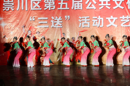 由崇川区区委宣传部和崇川区文化新闻出版局承办,我馆主办的第三届公共文化服务月“三送”文艺演出活动走进虹桥街道,上图为送演出时的场景。