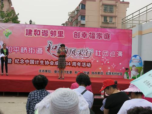 5月27日下午,和平桥街道计生协在5.29纪念日成立34周年之际举办了“建和谐邻里、创幸福家庭”社团巡演活动,邀请了文化馆工作人员一起参加了演出。