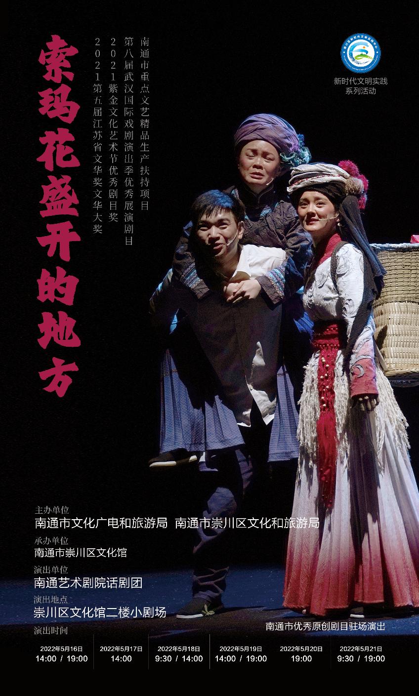 2022年5月16日下午两点,区文化馆二楼小剧场恢复对外开放,首场演出安排的是话剧《索玛花盛开的地方》,这也是“喜迎二十大 精品崇川行”南通市优秀舞台艺术作品系列演出的首秀。